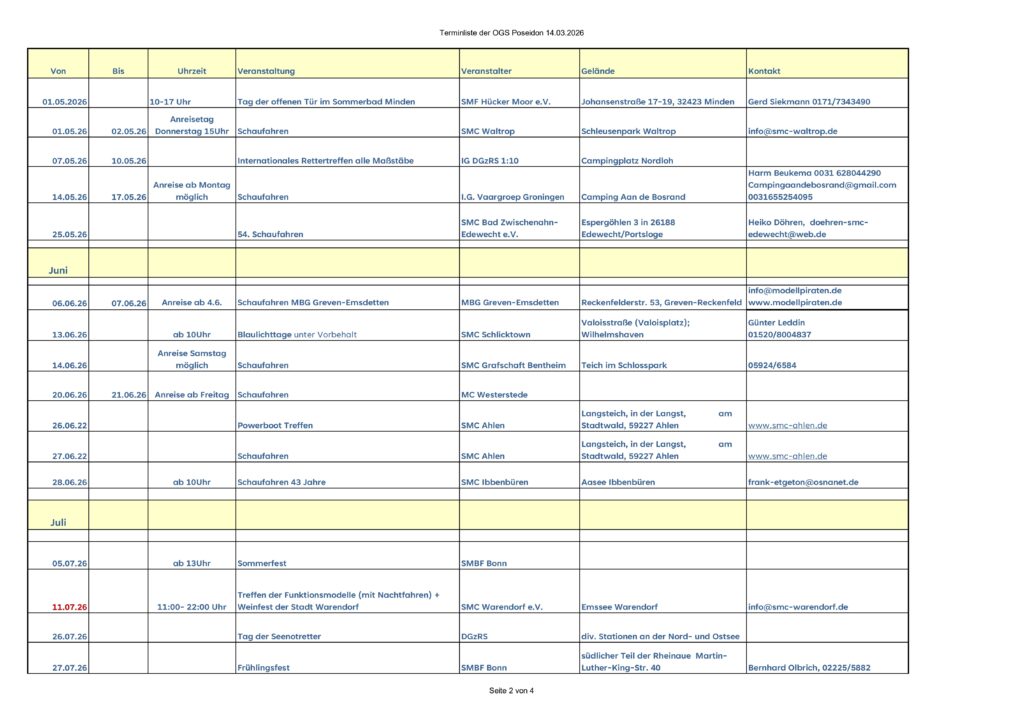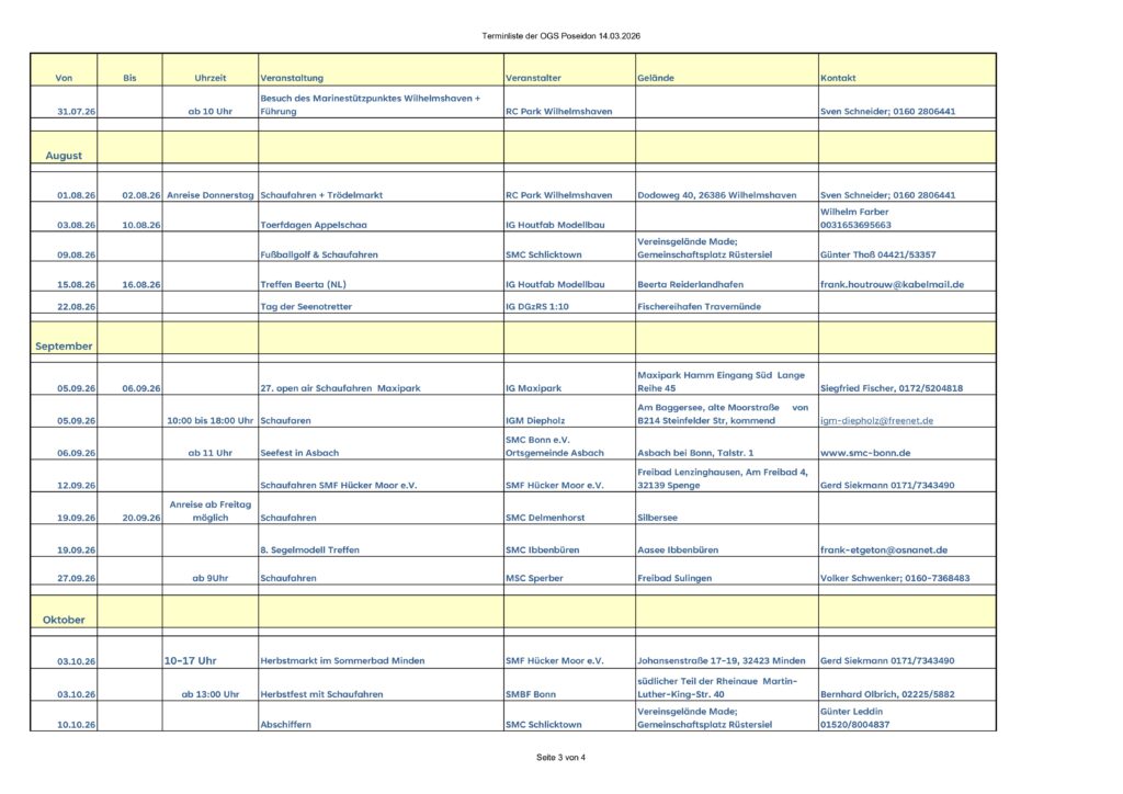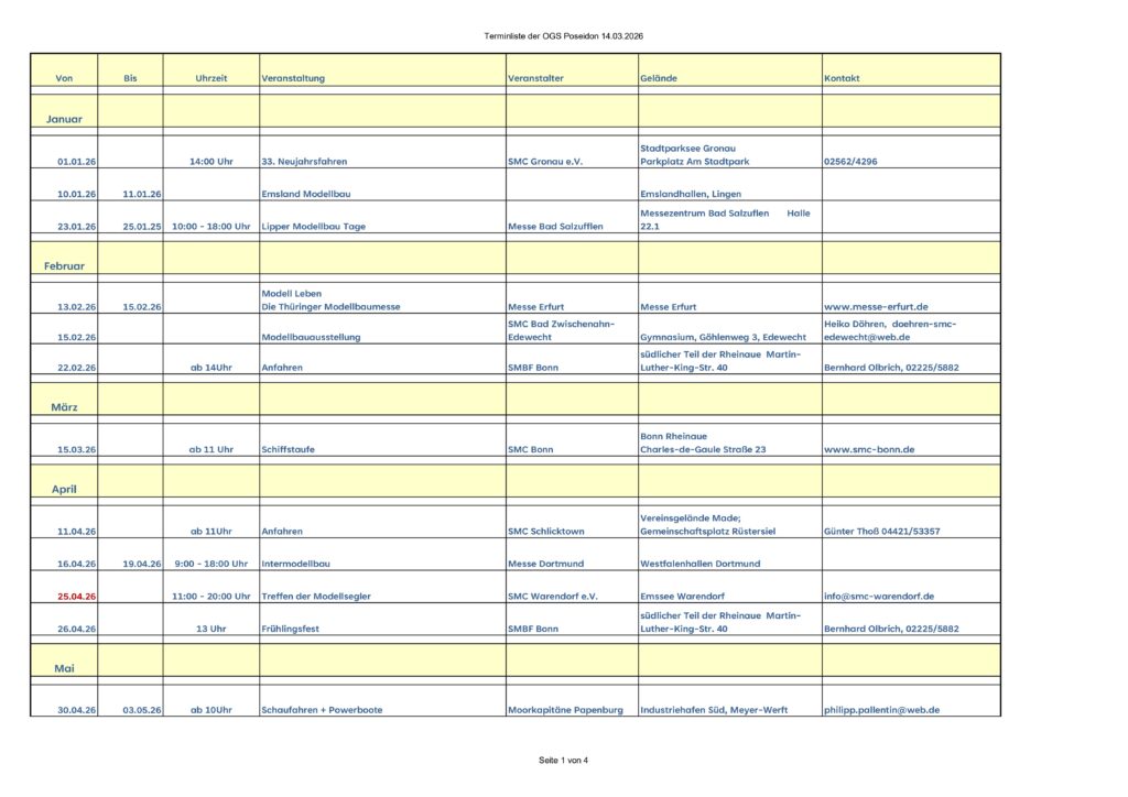 Hier findest du die aktuelle Terminliste der angeschlossenen Vereine.